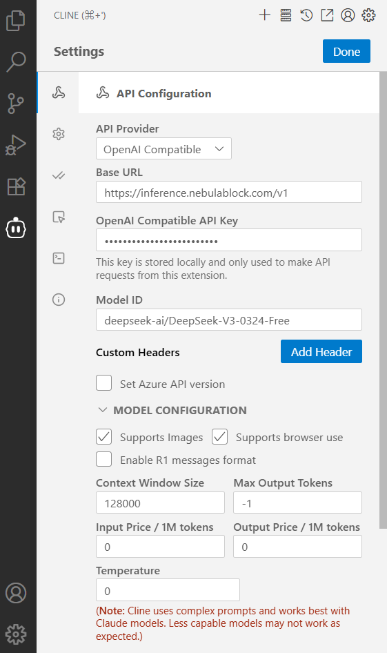 Integrating Cline with Nebula Block is one of the simplest ways to bring a powerful AI assistant into your VS Code workflow. With free DeepSeek API, developers can start experimenting immediately without setup hassles or hidden costs.