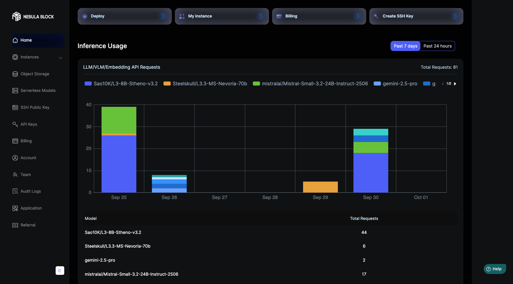 Whether you’re summarizing code, generating commit messages, or exploring new project ideas, this setup gives you an efficient, cost-effective AI workflow. As your needs grow, Nebula Block also makes it easy to scale into GPU-backed workloads — ensuring that your AI assistant evolves with you.