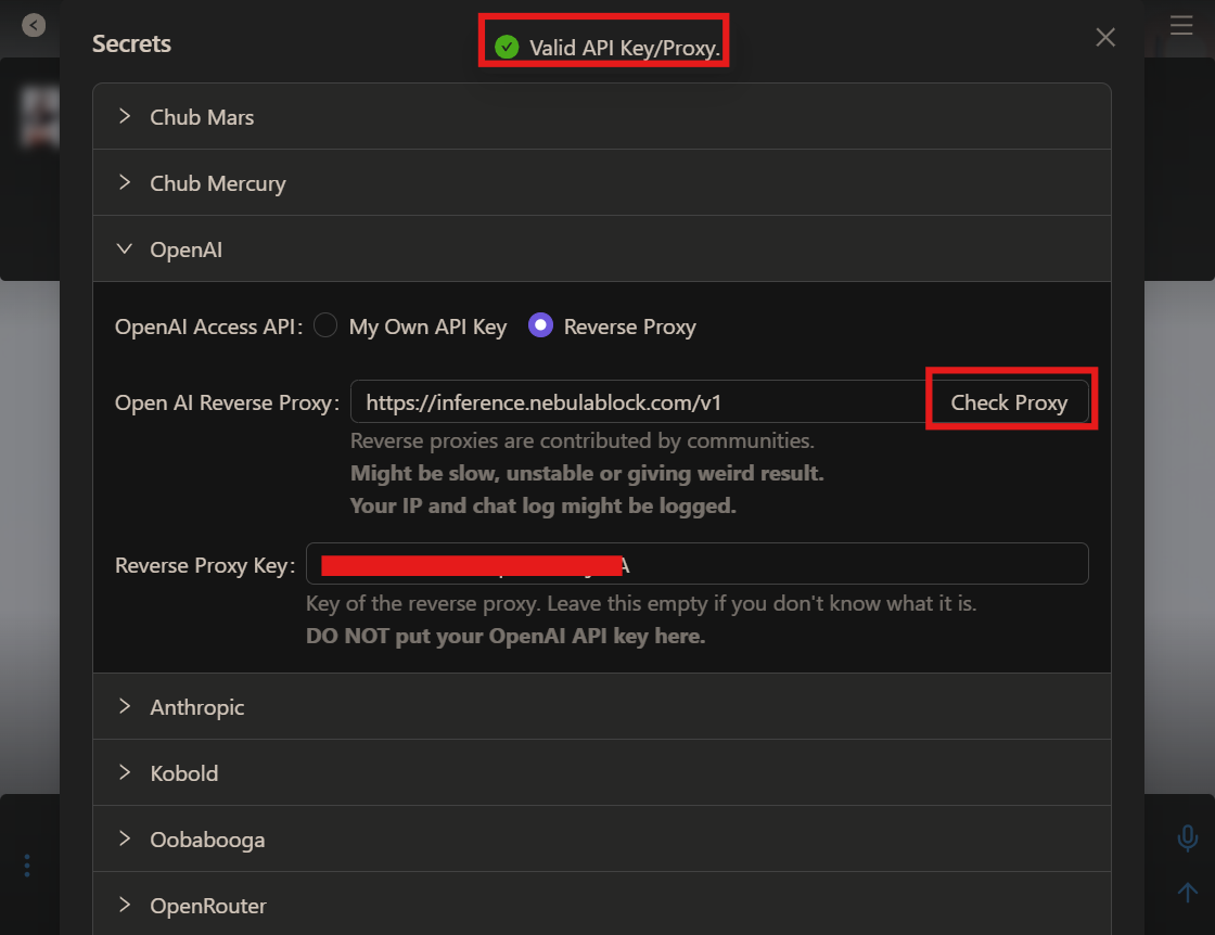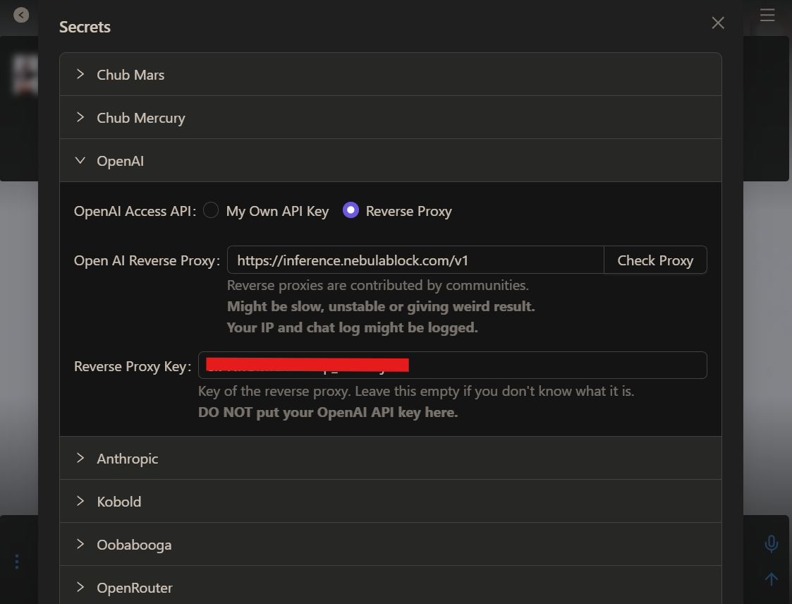 That’s all you need, your Chub AI is now connected to Nebula Block’s inference engine.